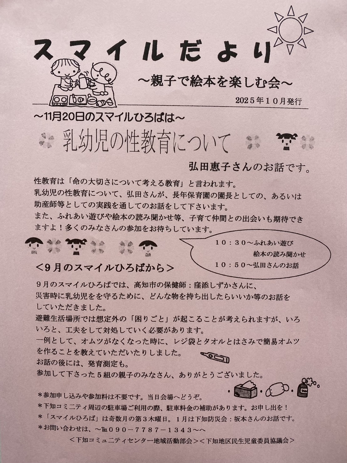下知スマイルひろば 11月 乳幼児の性教育について