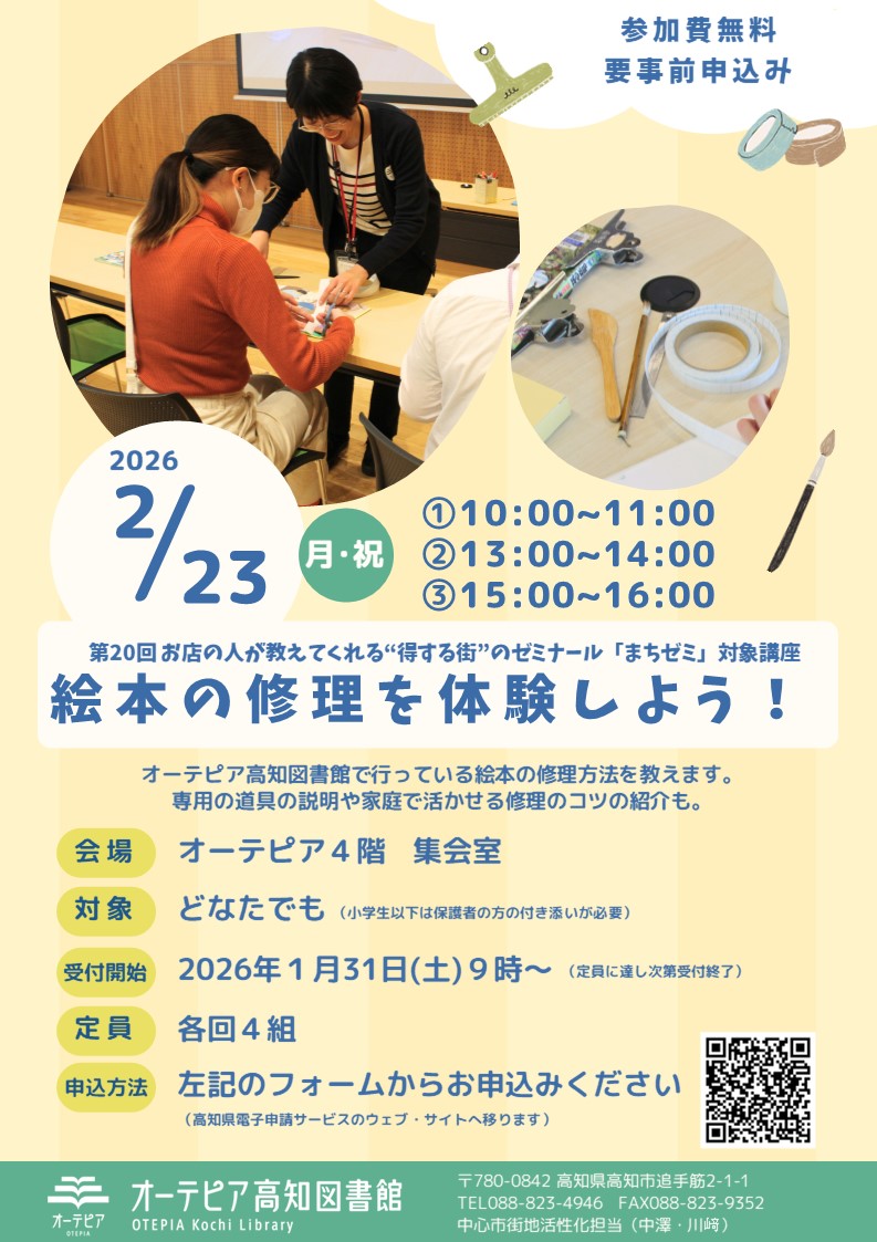 オーテピア高知図書館で行っている絵本の修理方法を教えます。