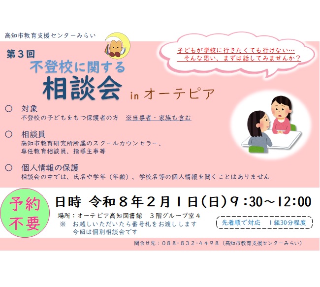 事前問い合わせ先:高知市教育研究所 教育支援センターみらい