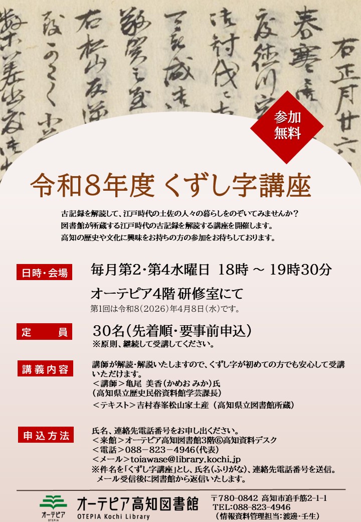 令和8年度くずし字講座の参加者募集