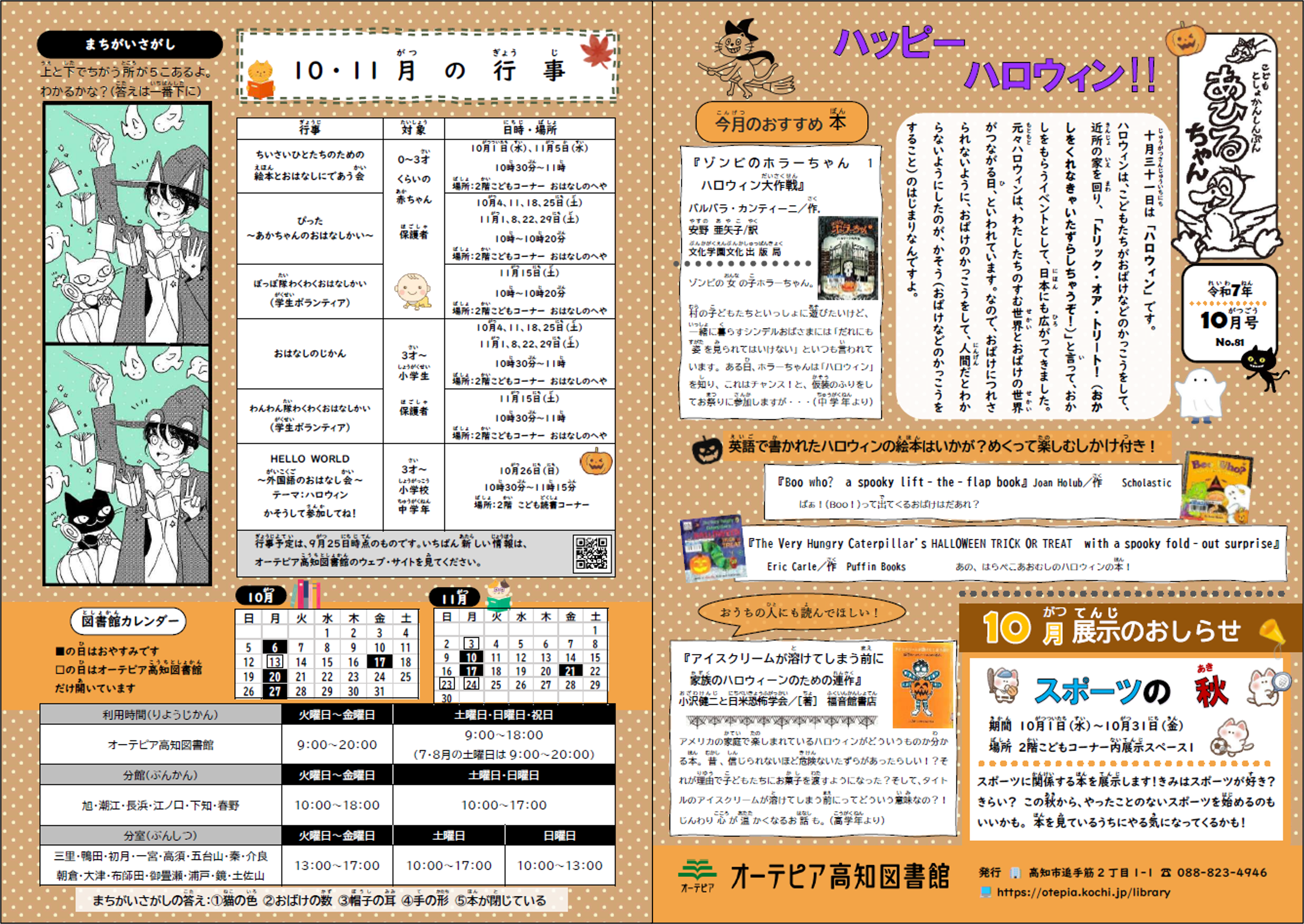 としょかんからのおしらせや、あたらしい本のしょうかいをのせています。