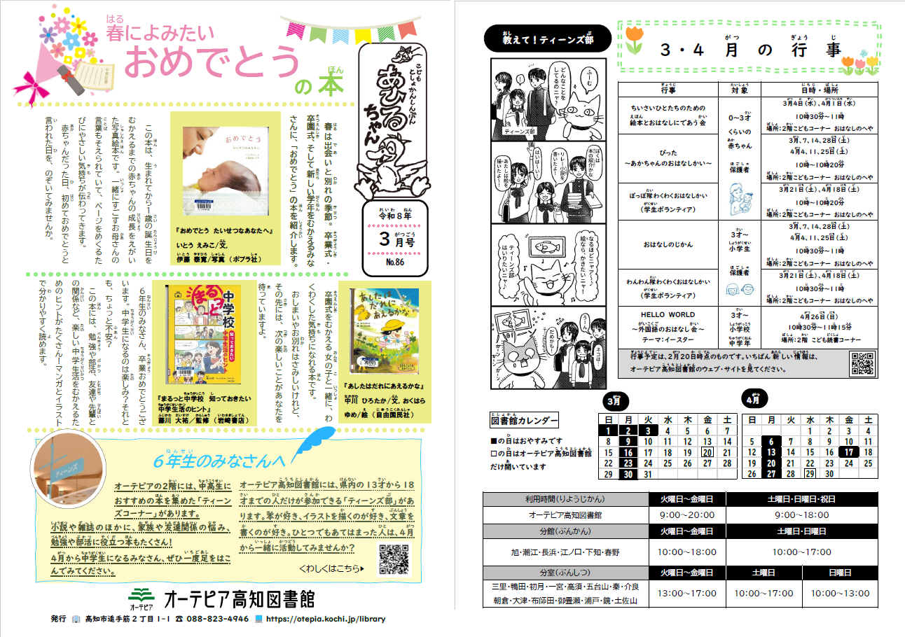 - オーテピア高知図書館、高知市民図書館・分館・分室では、