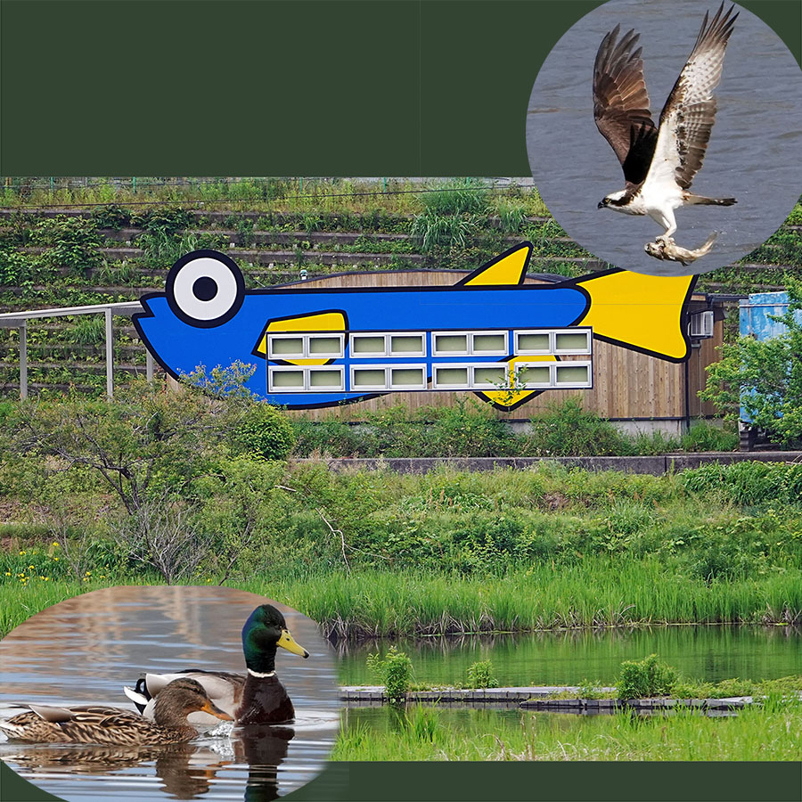 日高村「メダカさん家」(日下川調整池)に訪れる渡り鳥(カモなど)や留鳥(ミサゴなど)、迷鳥を観察しよう。
