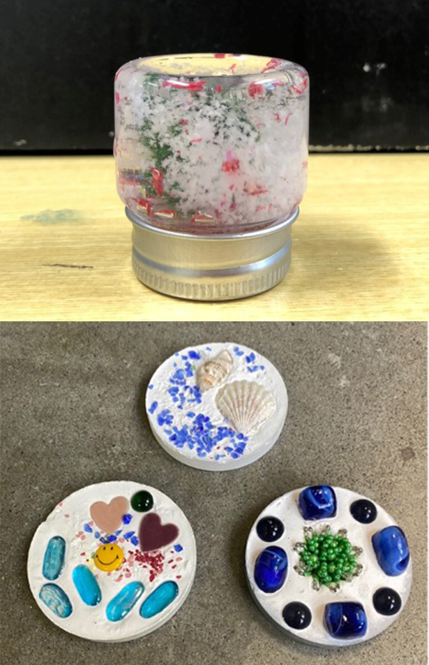 好きなキラキラパーツを選んで、かわいいコンクリート文鎮をつくろう。