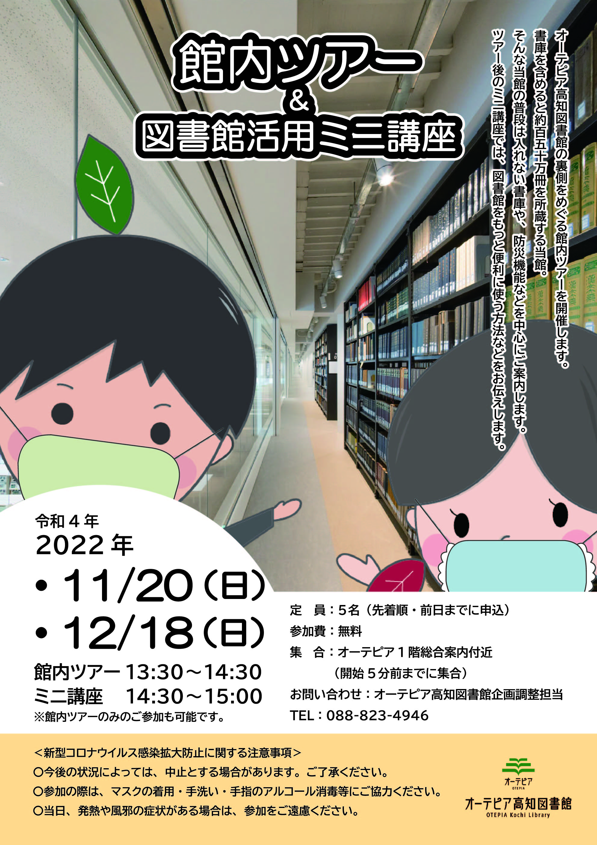 【集合】ツアー開始の5分前までにオーテピア1階総合案内付近にお集まりください。