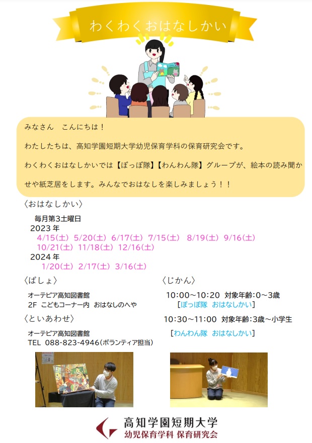 高知学園短期大学幼児保育学科保育研究会のお兄さん、お姉さんによる、おはなし会です。