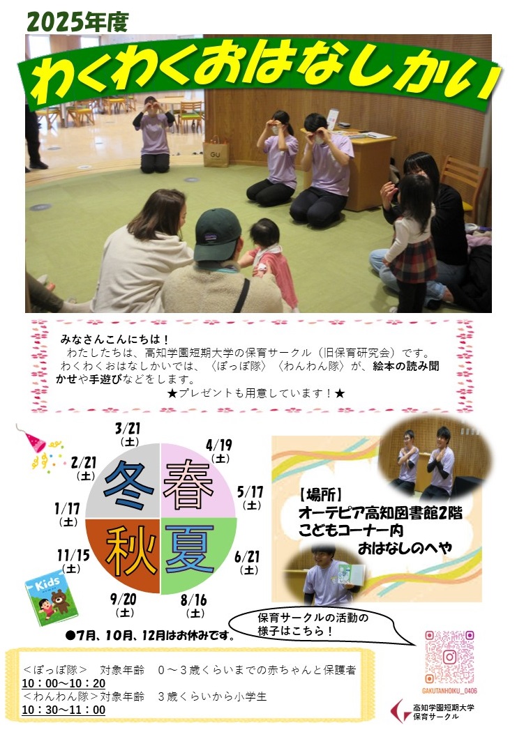 高知学園短期大学保育サークル(旧保育研究会)のお兄さんお姉さんによるおはなし会です。