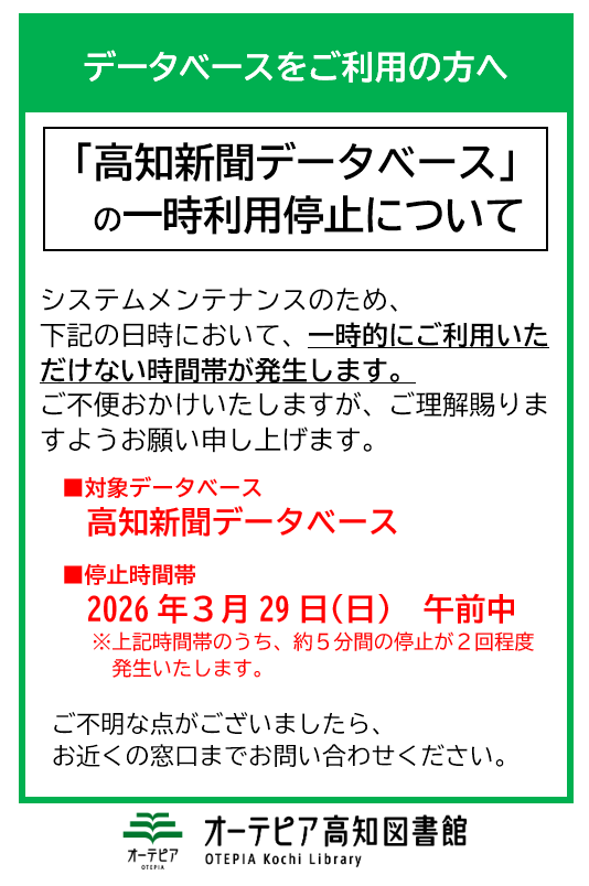 【3/29(日)AM】高知新聞データベースの一時利用停止について