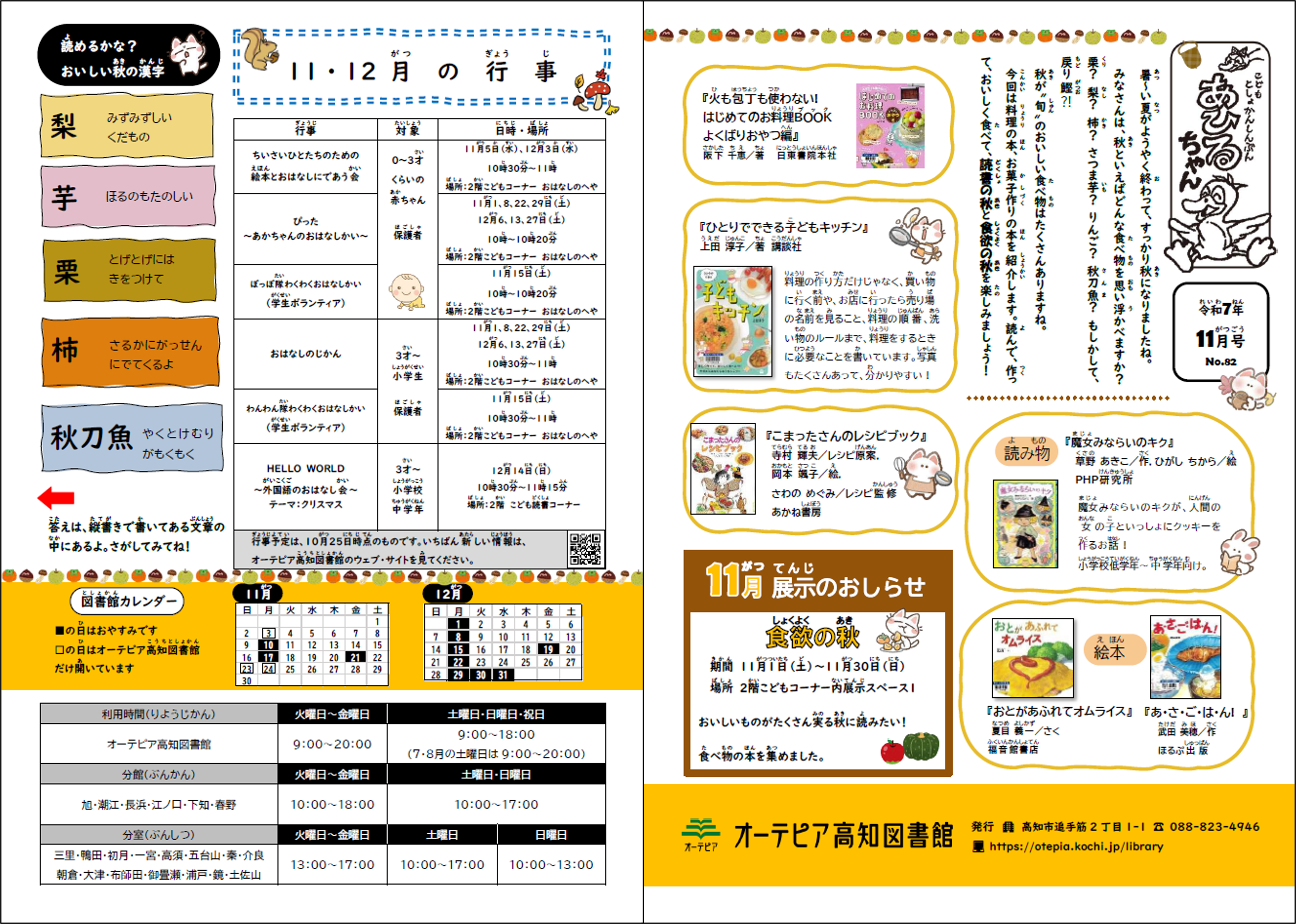 としょかんからのおしらせや、あたらしい本のしょうかいをのせています。